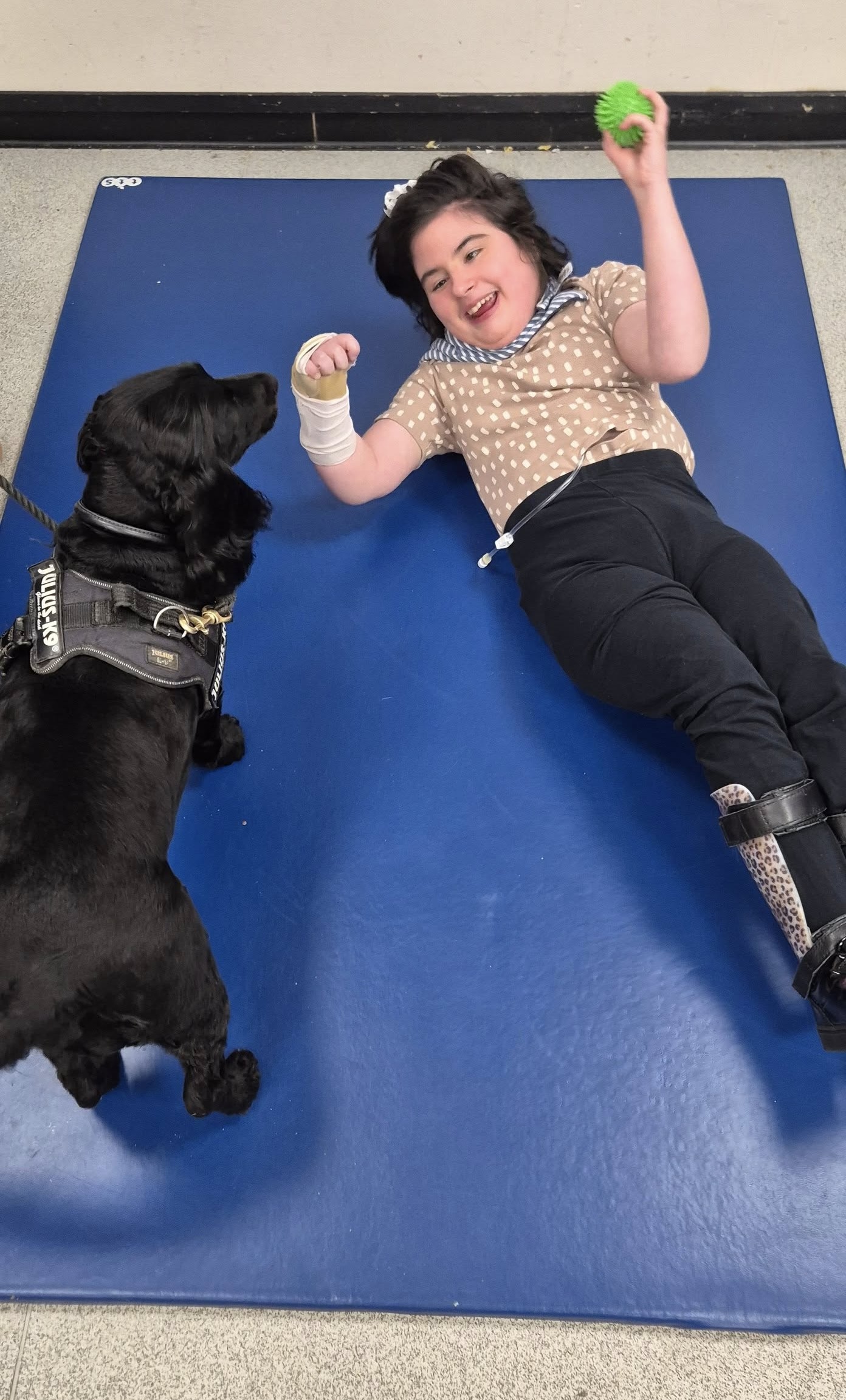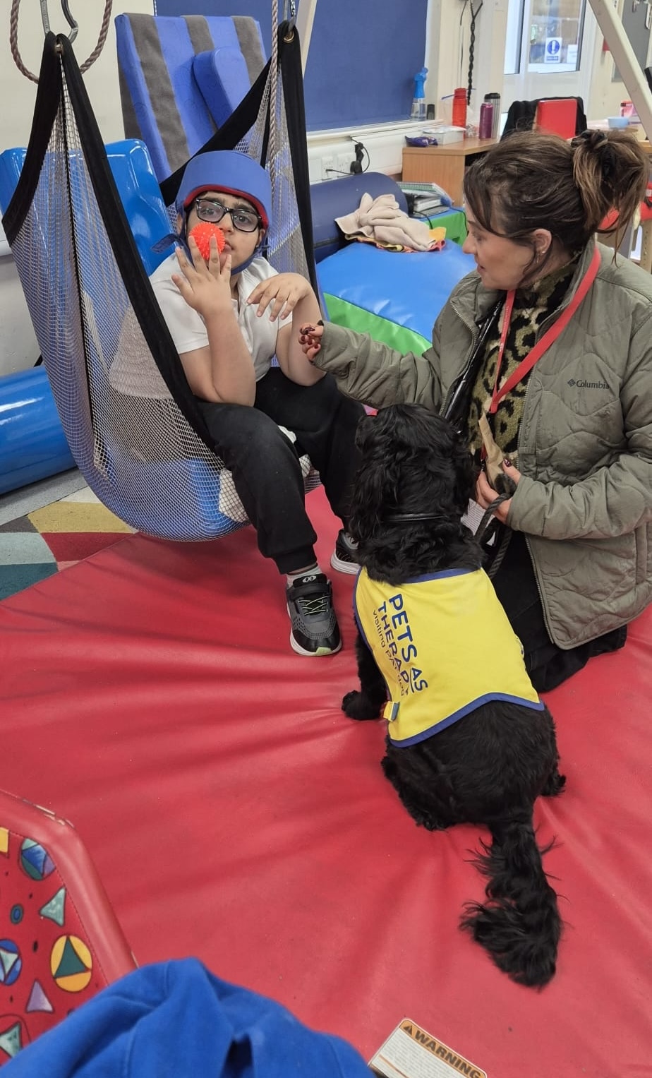 Sian McCoubrey, a Volunteer of the Foundation, commented, ‘The therapy dog visits are overwhelmingly successful and make a huge difference to the children, who thoroughly enjoy their contact with her, touching her fur and throwing toys to fetch. The dog interacts with the class beautifully and there were many smiling faces, children and adults alike!’